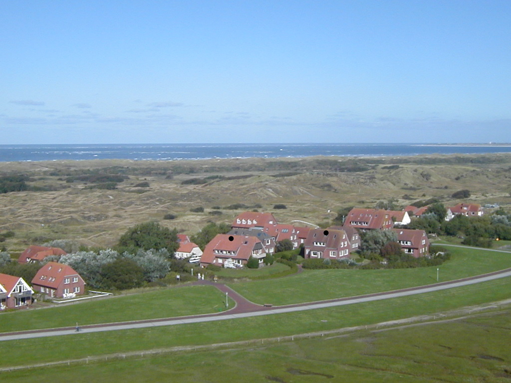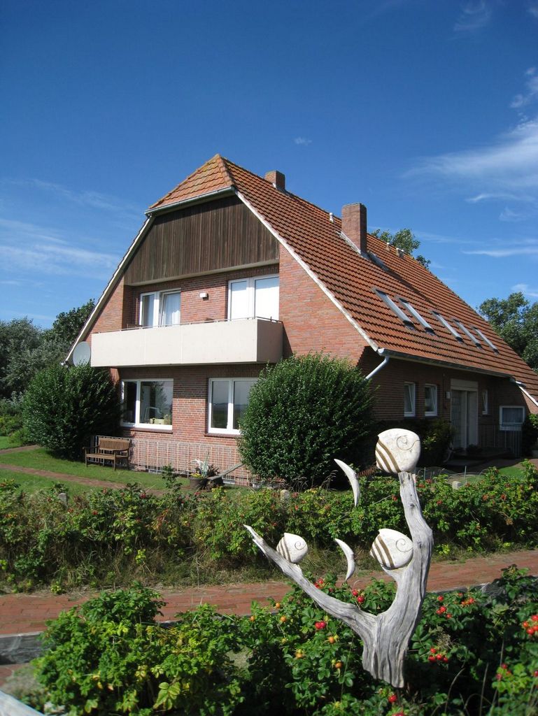 Die Ferienwohnung "Süd" ist mit ca. 75m² die größte Wohnung und bietet bis zu 4 Personen Platz auf 2 Etagen. Die Ferienwohnung verfügt über einen großen Süd-Balkon und freien Blick über Baltrumer Pferdewiesen und das Wattenmeer.